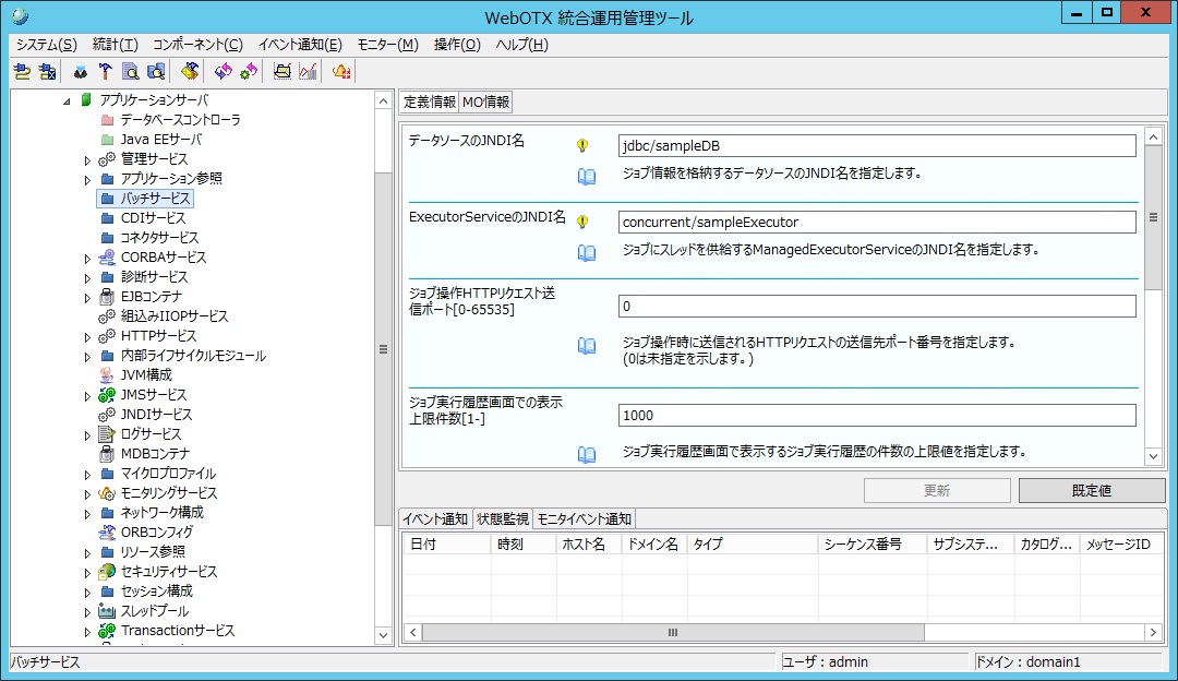 9. ツリービューより「<ドメイン名>」-「アプリケーションサーバ」-「バッチサービス」を選択します。