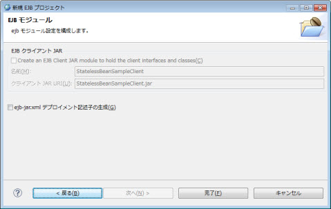 | EJB プロジェクト | 新規作成したプロジェクトを選択します。 | 選択されたプロジェクト名です。 |