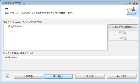 | ソース・フォルダー | ビルド・パス上のソースフォルダ名。 | ejbModule |