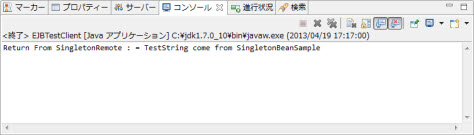 SingletonセッションBeanプロジェクトをサンプルとして提供します。 サンプルの作成は [チュートリアル > SingletonセッションBeanの作成 ] を参照してください。