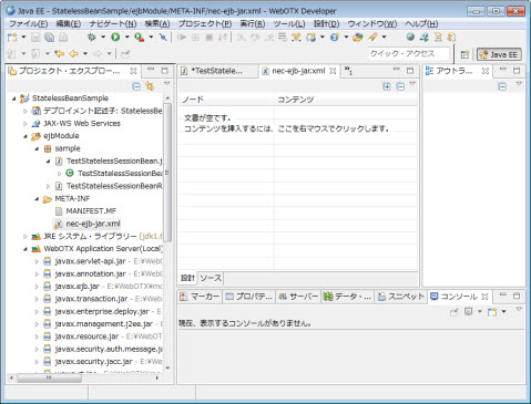 StatelessBeanSample(※ステートフルの場合:StatefulBeanSample、Singletonの場合:SingletonBeanSample) プロジェクトのnec-ejb-jar.xmlが作成されます。