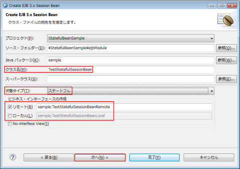 次のEJB 3.x セッション Beanの作成画面が表示されます。