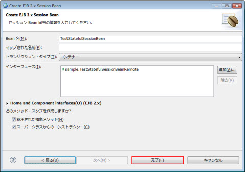 ステートフルセッションBean と SingletonセッションBean の手順については、適宜、該当箇所の読み替えでご理解ください。