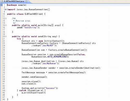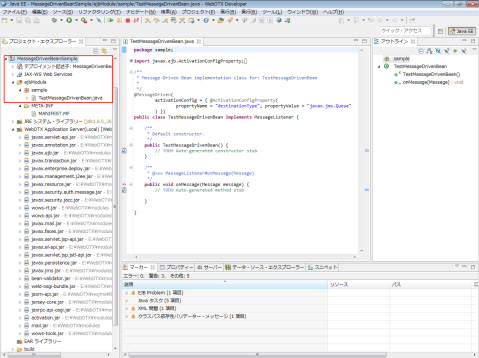 MessageDrivenBeanSampleプロジェクトにメッセージ駆動型Beanのソースが追加されます。