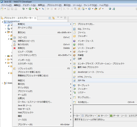 動的 Web プロジェクト DynWebTest が存在する場合には、DynWebTest 以外のプロジェクト名で作成し、以降の記載では、