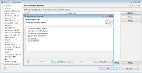 Web > 動的 Web プロジェクト を選択して、次へ をクリックします。