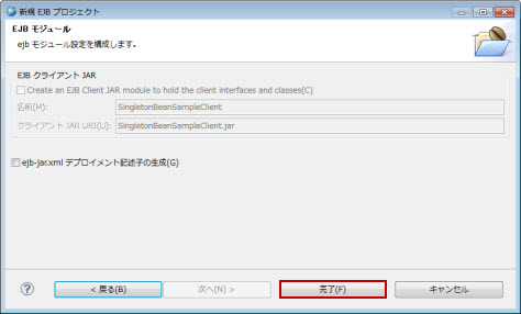 EJB モジュール画面で、ejb-jar.xmlデプロイメント記述子の生成 で ON