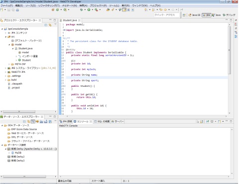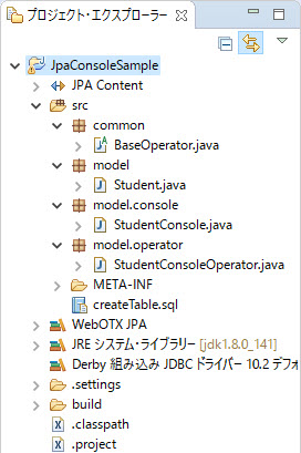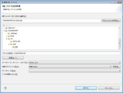 再度、データベースのドライバーを追加する必要はありません。その場合、プロジェクト・ツリーに、Derby