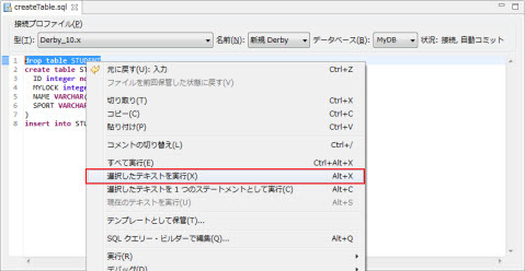 | 接続 | 新規 Derby |