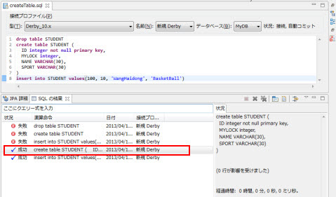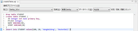 drop table STUDENT; create table STUDENT ( ID integer not null primary key, MYLOCK integer, NAME VARCHAR(30), SPORT VARCHAR(30) ); insert into STUDENT values(100, 10, 'WangHaidong', 'BasketBall');