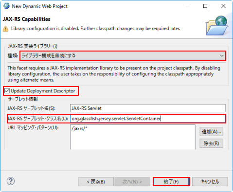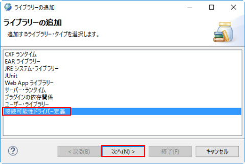 | ビルド・パスにドライバー・ライブラリーを追加 | 非選択 |