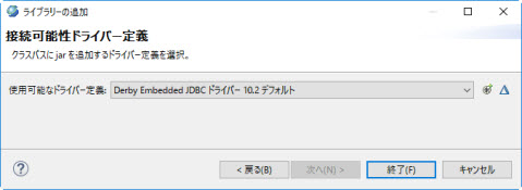 プロジェクトの作成時に、ビルド・パスにドライバー・ライブラリーを追加を選択している場合、