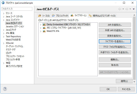 [JPA環境の準備]を参照してWebOTX JPAライブラリーを追加してください。