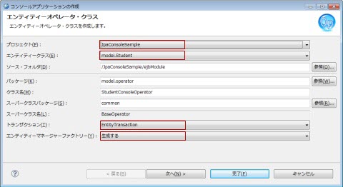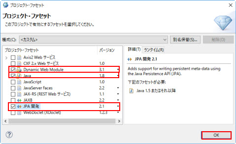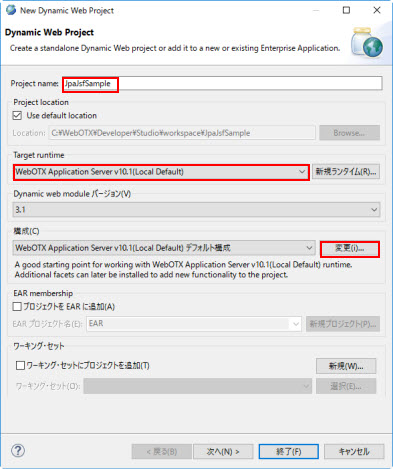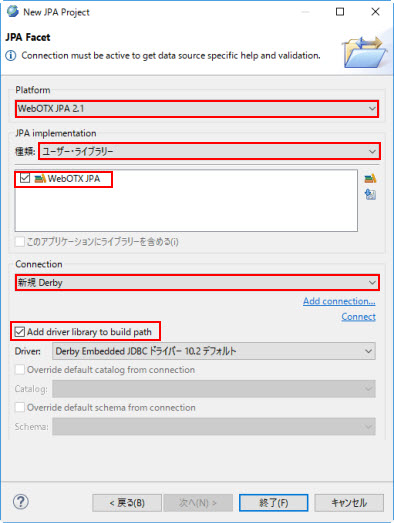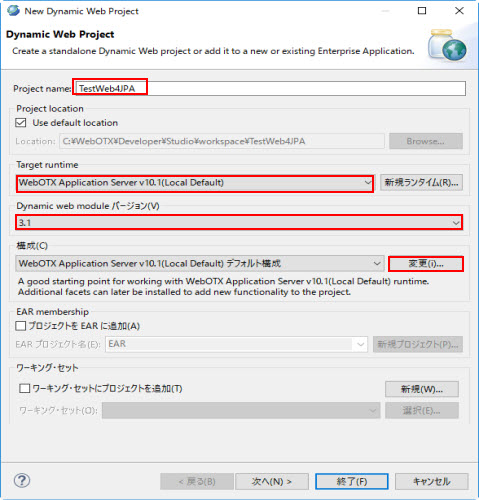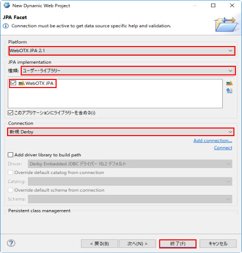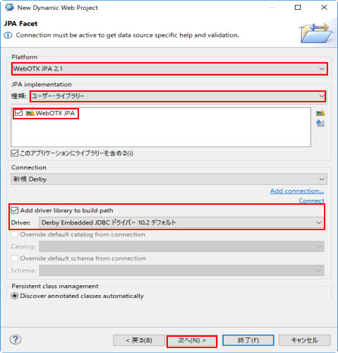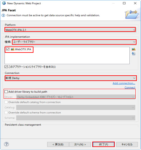 | JPA 実装 | WebOTX JPA を選択 |