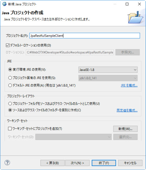JpaRestfulSampleClientというクラスを作成し、その内容は以下ようにします。