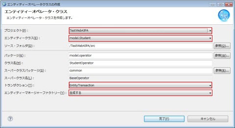 | 注釈つきクラスをpersistence.xml に記述 | 選択 |