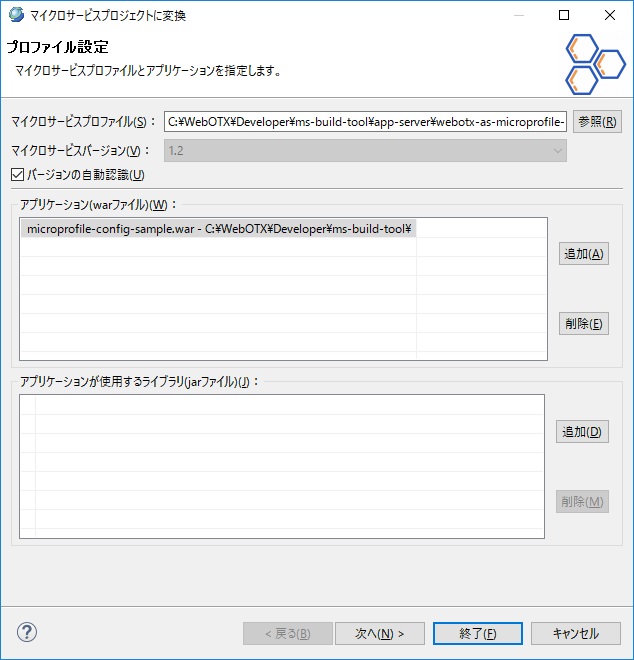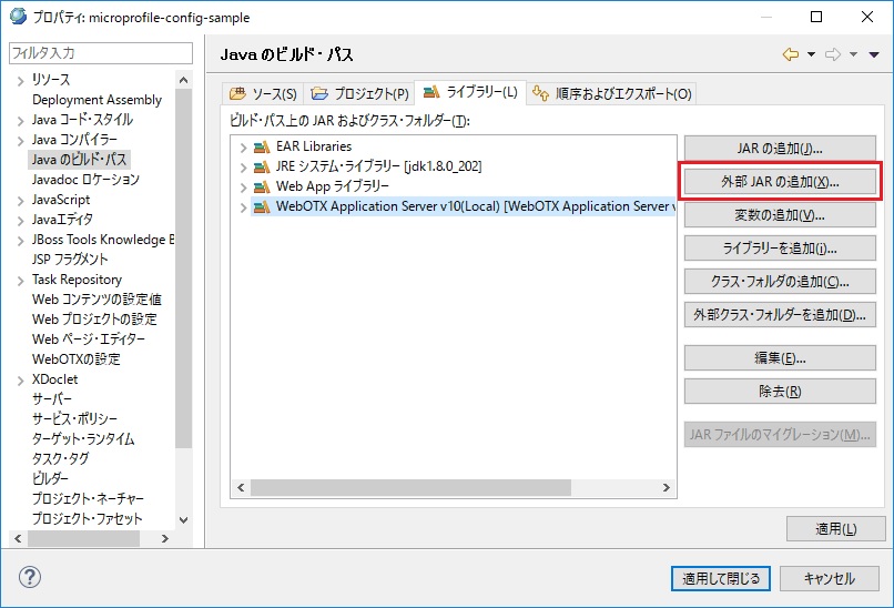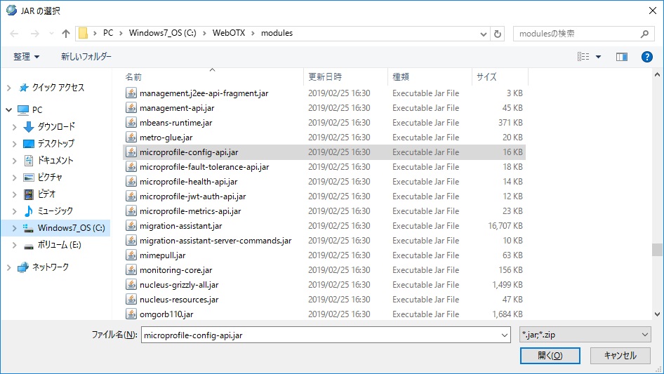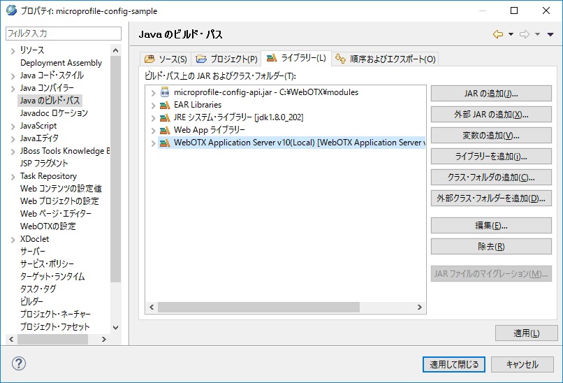 <WebOTX インストールディレクトリ>\WebOTX\modules から microprofile-config-api.jar を選択して、追加します。