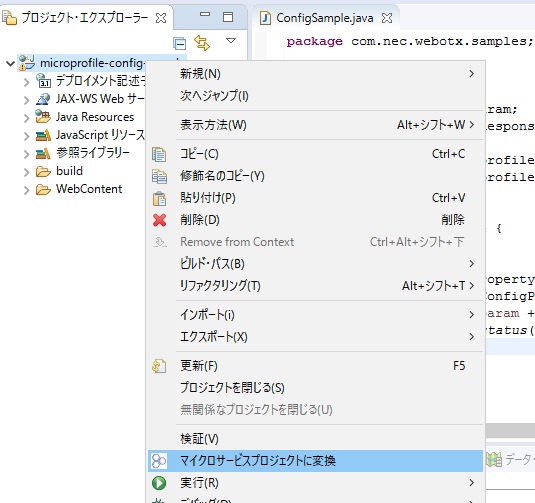 プロジェクトを右クリックして、「マイクロサービスプロジェクトに変換」を選択します。