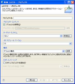 「J2EE」カテゴリ配下の「コネクター・プロジェクト」を選択し、「次へ(