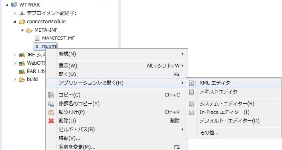 プロジェクト・エクスプローラー上でra.xmlファイルを選択して右クリックメニューの「アプリケーションから開く(