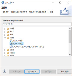 「J2EE」カテゴリ配下の「RAR ファイル」を選択し、「次へ(