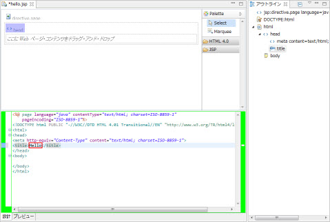 1行目のpageEncodingの値はJSPファイルのエンコード形式を示すため、エディタのテキストファイルエンコードの設定により変動します。
