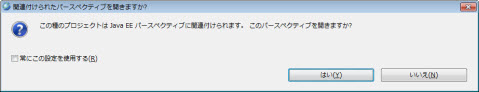 関連付けられたパースペクティブを開きますか? というダイアログが表示された場合は