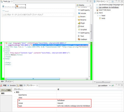 type="com.nec.webotx.webapp.tutorial.HelloBean"></jsp:useBean>