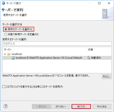 実行支援ライブラリを利用する場合は、Javaパースペクティブである必要があります。