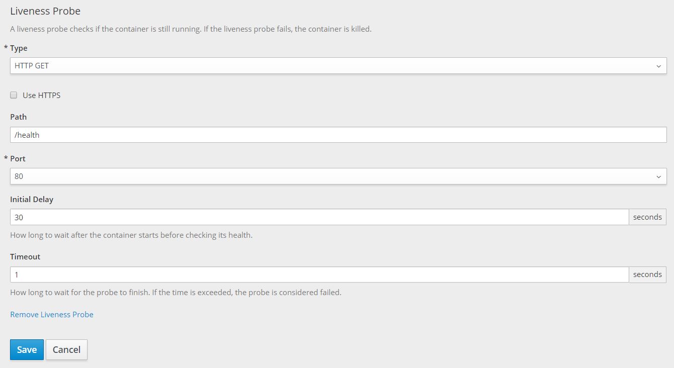 Initial Delay は Pod が起動してから /health にリクエストを行うまでの待ち時間です。