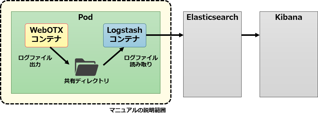 個別のコンテナで動作する WebOTX のログを1箇所に集約する方法を説明します。