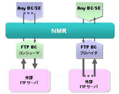 BCは制御情報のみを中継し、データはESBを経由せずにFTPサーバ間で直接転送されます。 FTP BC同士の組み合わせでのみ使用可能です。 |