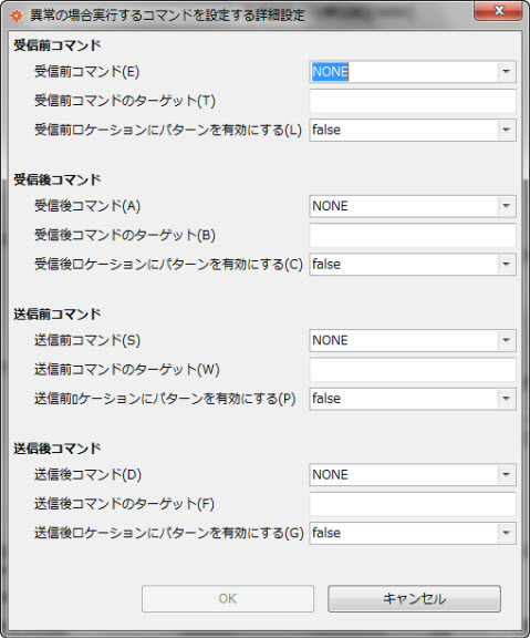 同様に、「送信前/送信後/受信前/受信後コマンドのターゲット」にもそれぞれ「送信前/送信後/受信前/受信後ロケーションにパターンを有効にする」をtrueにすることで特殊文字が使用可能になります。