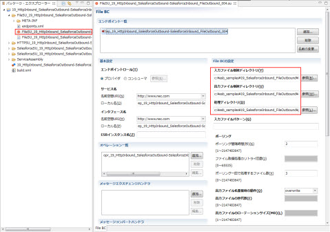 otxadmin> list-jbi-binding-components ================================ List of Binding Components ================================ Name : CORBABinding State: Started -------------------------------- Name : FTPBinding State: Started -------------------------------- Name : HTTPBinding State: Started -------------------------------- (中略) -------------------------------- Name : SOAPBinding State: Started --------------------------------HTTPBinding、FILEBindingとSalesforceBindingがstartedになっていることを確認します。