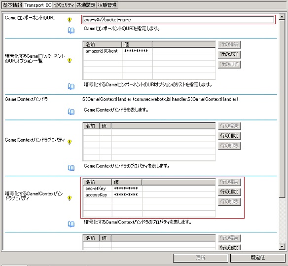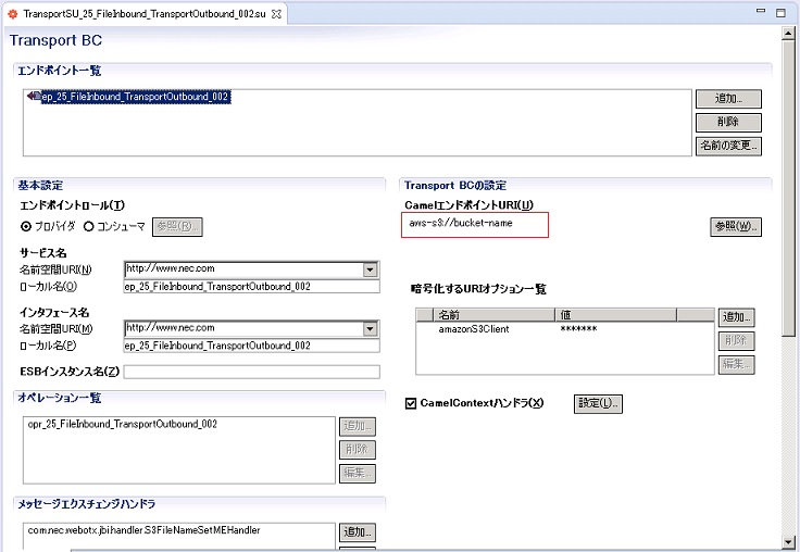 3. Transport BC(Outbound)はCamelコンポーネント(AWS-S3)を利用して、