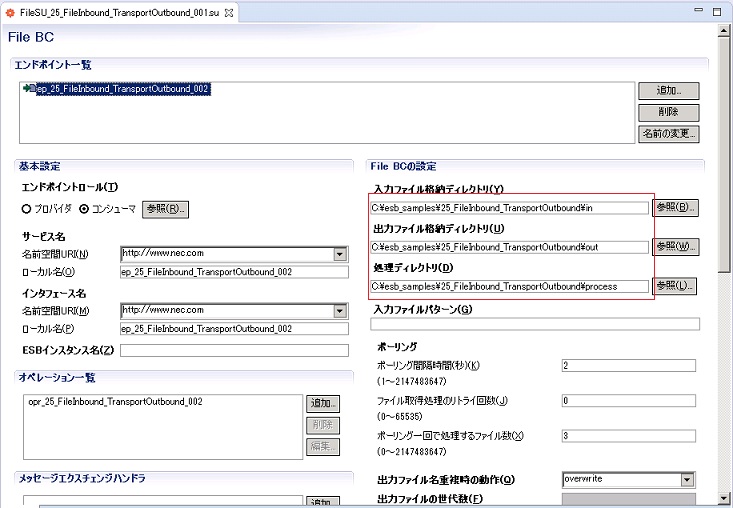 ここではTransport BCのInboundのサンプル(25_TransportInbound_FileOutbound.zip)を動作させる手順を説明します。