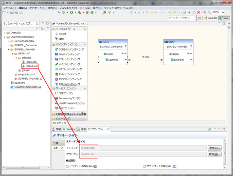 スキーマファイルとして、プロバイダ側と同じ、Hello.xsd を指定する場合、