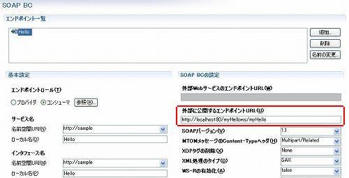 SOAP BCのエンドポイントの設定が記述されます。 |