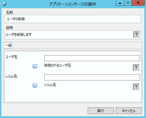 [アプリケーションサーバの操作]画面が表示されますので、削除するユーザ名とレルム名を入力してください。ユーザアプリケーションで使用しているレルム名は[ドメイン名]-[アプリケーションサーバ]-[セキュリティーサービス]-[デフォルトレルム]で確認できます。運用管理ユーザで使用しているレルム名は[ドメイン名]-[アプリケーションサーバ]-[管理サービス]-[JMXコネクタ]-[システム]の[認証レルム名]を確認してください。