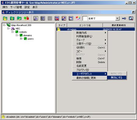 以下では、LDAPサーバとしてEnterprise Directory Server(以下EDS)を利用する場合について説明します。 WebOTXとEDSを連携させる場合は、WebOTXのセットアップカードに記載されているEDS初期化を行ってください。