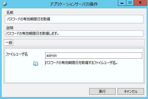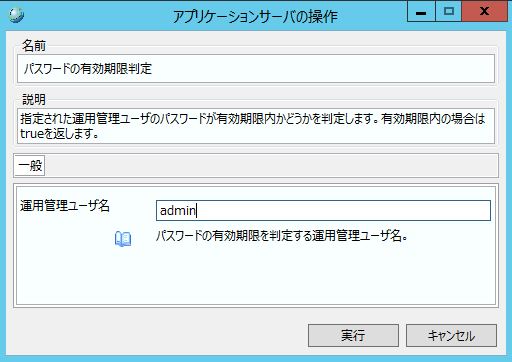 3. パスワードが有効期限内かどうかを判定する運用管理ユーザ名を入力して、[実行]を押します。