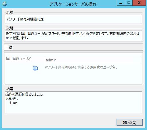 4. 入力された運用管理ユーザのパスワードが有効期限内の場合は、true、期限が切れている場合はfalseが表示されます。