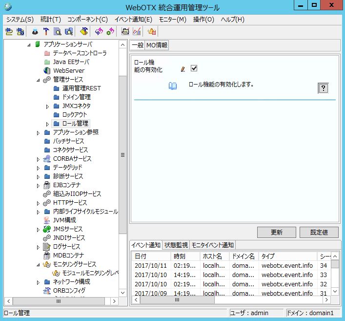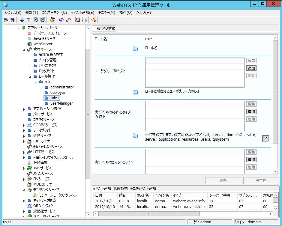 1. [ドメイン名]-[アプリケーションサーバ]-[管理サービス]-[ロール管理]をクリックします。