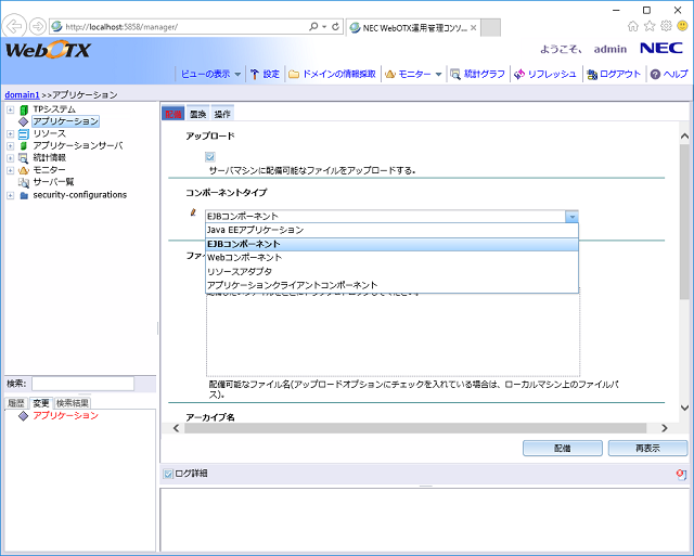 運用管理コンソールを利用して、Java EEのアプリケーションを配備する手順を説明します。