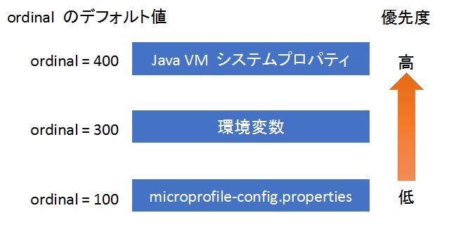 この優先度は、MicroProfile Config 2.0 で以下のように定義されており、 WebOTX V11 での既定値です。