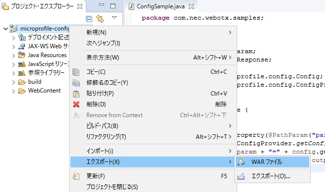 ここでは、WebOTX Developer にて MicroProfile Config のサンプルアプリケーションを作成する手順について説明します。