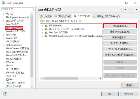 JAR選択画面でWEB-INF/lib配下にあるJARファイルを選択状態にして、OK