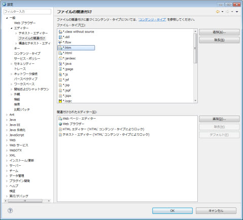 Eclipseの対象ファイルの関連付けが無い状態で、HTMLやJSPファイルをウィザードで作成すると、Internet