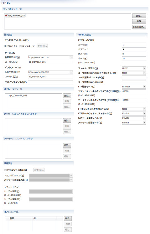 共通項目(セキュリティ認証、トランザクション、メッセージ送信優先度、エラーリトライ)を設定します。 |
