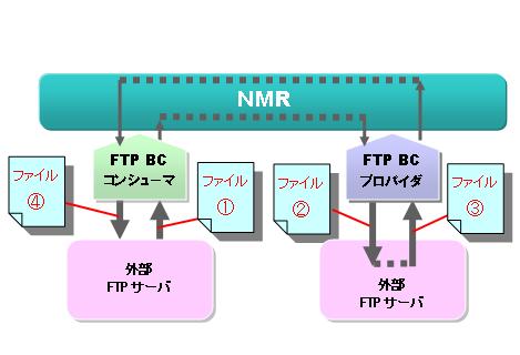 BCは制御情報のみを中継し、データはESBを経由せずにFTPサーバ間で直接転送されます。 FTP BC同士の組み合わせでのみ使用可能です。 |